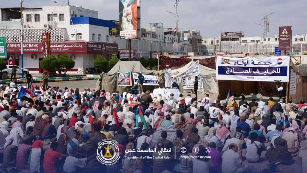 جماهير الجنوب تؤدي صلاة جمعة الوفاء للحليف الصادق في ساحة العروض بالعاصمة عدن
