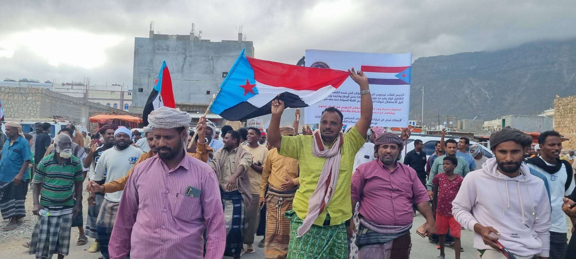 شهدت محافظة أرخبيل سقطرى اليوم احتشادًا جماهيريًا واسعًا انطلقت فعالياته من ساحة ملعب الفقيد سعد علي سالمين بمدينة حديبو، وجابت شوارع العاصمة قبل أن تعود إلى الساحة الرئيسية، في رسالة واضحة لتجديد التفويض الشعبي للرئيس القائد عيدروس الزُبيدي. وتقدم الحشد القيادات المحلية للمجلس الانتقالي الجنوبي بالمحافظة، وعلى رأسهم رئيس انتقالي سقطرى الأستاذ سعيد عمر محمد بن قبلان، ومدير عام مديرية حديبو الأستاذ عبدالحليم محمد، والشيخ مبارك علي بن قبلان رئيس الهيئة التنفيذية للمجلس العام لأبناء محافظتي المهرة بالمحافظة، والأستاذ ناظم مبارك علي رئيس الكتلة للجمعية الوطنية بالمحافظة. وردد المحتشدون شعارات تؤكد وحدة الصف الجنوبي، وتمسك أبناء سقطرى بثوابتهم الوطنية، وتجديد التفويض للرئيس القائد عيدروس الزُبيدي، مؤكّدين دعمهم الكامل للمجلس الانتقالي الجنوبي كممثل شرعي لإرادة الشعب الجنوبي. وألقى الأستاذ سعيد عمر محمد بن قبلان كلمة شدد فيها على أن الاحتشاد ليس مجرد فعالية، بل رسالة سياسية واضحة تؤكد أن الجنوب ماضٍ في مشروعه الوطني، وأن إرادة شعبه لن تُمس. وأكد أن سقطرى ستظل جنوبية الهوى والانتماء، وأن المجلس الانتقالي الجنوبي هو تعبير عن إرادة شعب الجنوب الحرة. وفي ختام الاحتشاد، صدر البيان الختامي لجماهير محافظة أرخبيل سقطرى، البيان الختامي: بسم الله الرحمن الرحيم الحمد لله رب العالمين، والصلاة والسلام على سيدنا محمد، وعلى آله وصحبه أجمعين. يا جماهير شعب الجنوب العربي، يا أبناء محافظة أرخبيل سقطرى الأحرار… إن جماهير محافظة أرخبيل سقطرى، وهي تحتشد اليوم في هذا المشهد الوطني المسؤول، تؤكد أن حضورها لم يكن بدافع العاطفة الآنية، بل تعبيرًا واعيًا عن موقف سياسي واضح، وانحياز صريح لقضية عادلة، وخيار وطني لا يقبل الالتفاف أو التأجيل. ويأتي هذا الاحتشاد في مرحلة دقيقة من مسار القضية الجنوبية، تتكاثر فيها الضغوط السياسية، وتتعاظم محاولات التأثير على إرادة شعب الجنوب، وفرض مسارات لا تعبّر عن تطلعاته الحقيقية في الحرية والاستقلال واستعادة دولته كاملة السيادة. لقد عبّرت جماهير أرخبيل سقطرى اليوم عن موقف ثابت يؤكد أن الجنوب لم يكن يومًا تابعًا، ولن يقبل أن تُدار قضاياه من خارج إرادته، وأن صوت الجماهير سيبقى المصدر الأول للشرعية، والحَكم الفاصل في تحديد المسار والمصير. وانطلاقًا من هذا الموقف، تعلن جماهير محافظة أرخبيل سقطرى ما يلي: تؤكد تمسكها بالمشروع الوطني الجنوبي، ووقوفها خلف قيادته السياسية، ممثلة بالرئيس القائد عيدروس بن قاسم الزُبيدي، باعتباره حامل تطلعات شعب الجنوب والمعبر عن إرادته السياسية. تشدد على أن المجلس الانتقالي الجنوبي هو نتاج إرادة شعبية، وأي محاولات لتجاوزه أو إضعافه أو استبداله بكيانات مفروضة لا تحظى بأي قبول شعبي، وتُعد مرفوضة جملةً وتفصيلًا. تؤكد أن أي شرعية لا تنبع من إرادة شعب الجنوب هي شرعية منقوصة، وأن حق تقرير المصير حق أصيل لا يسقط بالتقادم ولا يمكن مصادرته بالضغوط أو القرارات الفوقية. تطالب بوقف أي ممارسات تضييق أو احتجاز أو استهداف على خلفيات سياسية جنوبية، وتعتبر ذلك انتهاكًا مرفوضًا لمبادئ العمل السياسي وحرية التعبير. ترفض الدخول في أي مسارات حوار أو تسويات سياسية لا تعكس جوهر القضية الجنوبية، ولا تضع في مقدمتها حق شعب الجنوب في استعادة دولته وهويته السياسية. تدعو المجتمع الدولي، والأمم المتحدة، والمنظمات الحقوقية، إلى التعامل الجاد مع القضية الجنوبية، باعتبارها قضية شعب، والاستماع لصوته بعيدًا عن الحلول الجزئية أو المفروضة. تحذر من أي محاولات لزعزعة أمن الجنوب أو تحويله إلى ساحة صراع بديلة، وتؤكد أن أمن الجنوب واستقراره خط أحمر، وأن الدفاع عنه حق مشروع. تؤكد أن المرحلة القادمة تتطلب وعيًا عاليًا، وتماسكًا وطنيًا، واستعدادًا سياسيًا وشعبيًا لمواجهة التحديات، وأن النضال الجنوبي مستمر حتى تحقيق أهدافه. تعبّر عن اعتزا