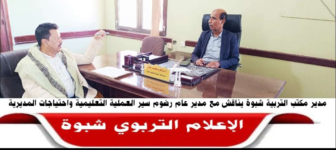 مدير مكتب التربية والتعليم بشبوة يناقش مع مدير عام رضوم سير العملية التعليمية واحتياجات المديرية