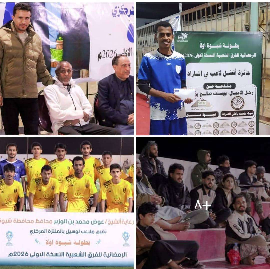 عتق / عادل القباص تصوير / علاء الدين المؤيد برعاية كريمة من محافظ محافظة شبوة الشيخ عوض محمد بن الوزير، تواصلت مساء أمس على ملعب لوسيل بالمنتزه المركزي بمدينة عتق منافسات البطولة الرمضانية الأولى للفرق الشعبية لكرة القدم ، والتي تُقام تحت شعار “شبوة أولاً” في نسختها الذهبية الأولى، وسط حضور رسمي وجماهيري لافت رغم شدة البرودة، عكس حجم التفاعل مع الحدث الرياضي الأبرز في الشهر الكريم. وشهدت الأمسية حضور عدد من القيادات التنفيذية والشخصيات الاجتماعية والرياضية ونجوم الزمن الجميل، إلى جانب مندوبي الفرق المشاركة ووسائل الإعلام، في أجواء تنافسية حماسية جسدت روح الأخوة والتآخي بين شباب المحافظة. *الصديق يتفوق على الشباب بثنائية نظيفة* وافتُتحت منافسات المجموعة الثالثة عند الساعة العاشرة مساءً بلقاء جمع فريقي الصديق والشباب ، في مواجهة اتسمت بالندية والإثارة، إلا أن الصديق فرض أفضليته بفضل الانتشار السليم والانضباط التكتيكي، ليحسم اللقاء بهدفين نظيفين حملا توقيع يسلم بوطهيف ونجم المباراة عبدالله حميدة ، فيما نال عبدالله حميدة جائزة أفضل لاعب في المباراة ، والمقدمة من شركة يوسف باعلي. *الصحيفة يحسم ديربي الريدة بثلاثية* وفي المواجهة الثانية، واصل فريق الصحيفة تألقه أداءً ونتيجة، بعدما تفوق على غريمه التقليدي فريق الريدة بثلاثة أهداف دون رد، تناوب على تسجيلها سالمين ناصر وأسامة عوض لكوع (هدفين). وحصد النجم أسامة عوض لكوع جائزة أفضل لاعب في المباراة، المقدمة من شركة يوسف باعلي. *نجوم حبان يضرب بقوة أمام الصاعقة* وفي ثالث مباريات المجموعة الثالثة، أكد فريق نجوم حبان خبرته وإمكاناته الفنية، بعدما قلب التعادل في الشوط الأول إلى فوز عريض بأربعة أهداف مقابل هدف على حساب الصاعقة، مستفيدًا من تراجع المخزون اللياقي لمنافسه في الشوط الثاني ، وسجل هدف الصاعقة الوحيد اللاعب علي الحطيبي ، فيما تألق بدر ناصر من نجوم حبان ونال جائزة أفضل لاعب في المباراة، المقدمة من شركة يوسف باعلي إضافة قدمت اسئله للجمهور وجوائز قيّمة خلال المباريات الثلاث بدعم شركة باعلي . وأدار مباريات الأمسية تحكيميًا الحكم عبدربه رويس السليماني. *مباريات اليوم* وتتواصل المنافسات مساء اليوم الثلاثاء على ملعب لوسيل بالمنتزه المركزي بمدينة عتق، حيث يلتقي عند الساعة العاشرة مساءً ضمن المجموعة الرابعة فريقا صمود نصاب والقادسية هدى ، فيما تجمع المباراة الثانية استقلال عتق بأشبال عتق ، في مواجهتين مرتقبتين ينتظر أن تشهدا تنافسًا قويًا. وتؤكد البطولة الرمضانية الأولى أن الرياضة ستظل عنوانًا لوحدة الشباب، ومنبرًا لترسيخ القيم النبيلة ، ونبضًا متجددًا للحياة في شبوة خلال الشهر الفضيل . برعاية كريمة من محافظ محافظة شبوة الشيخ عوض محمد بن الوزير، تواصلت مساء أمس على ملعب لوسيل بالمنتزه المركزي بمدينة عتق منافسات البطولة الرمضانية الأولى للفرق الشعبية لكرة القدم ، والتي تُقام تحت شعار “شبوة أولاً” في نسختها الذهبية الأولى، وسط حضور رسمي وجماهيري لافت رغم شدة البرودة، عكس حجم التفاعل مع الحدث الرياضي الأبرز في الشهر الكريم. وشهدت الأمسية حضور عدد من القيادات التنفيذية والشخصيات الاجتماعية والرياضية ونجوم الزمن الجميل، إلى جانب مندوبي الفرق المشاركة ووسائل الإعلام، في أجواء تنافسية حماسية جسدت روح الأخوة والتآخي بين شباب المحافظة. *الصديق يتفوق على الشباب بثنائية نظيفة* وافتُتحت منافسات المجموعة الثالثة عند الساعة العاشرة مساءً بلقاء جمع فريقي الصديق والشباب ، في مواجهة اتسمت بالندية والإثارة، إلا أن الصديق فرض أفضليته بفضل الانتشار السليم والانضباط التكتيكي، ليحسم اللقاء بهدفين نظيفين حملا توقيع يسلم بوطهيف ونجم المباراة عبدالله حميدة ، فيما نال عبدالله حميدة جائزة أفضل لاعب في المباراة ، والمقدمة من شركة يوسف باعلي. *الصحيفة يحسم ديربي الريدة بثلاثية* وفي المواجهة الثانية، واصل فريق ال