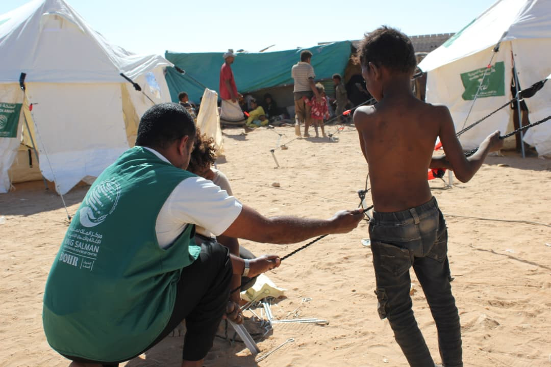 بدعم مركز الملك سلمان.. الفرقة أولى طوارئ تدشن توزيع خيام إيوائية وسلال غذائية لإغاثة متضرري حريق مخيمات العبر