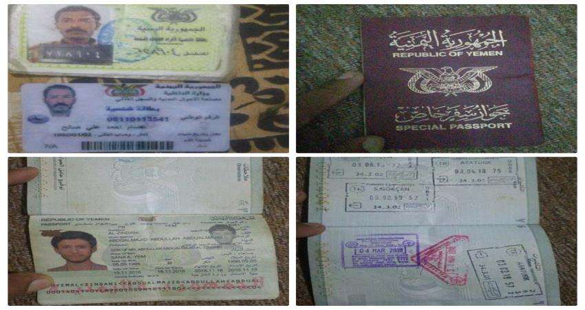 شاهد هويات شخصية شمالية وجواز سفر لحفيد الزنداني في معارك أبين
