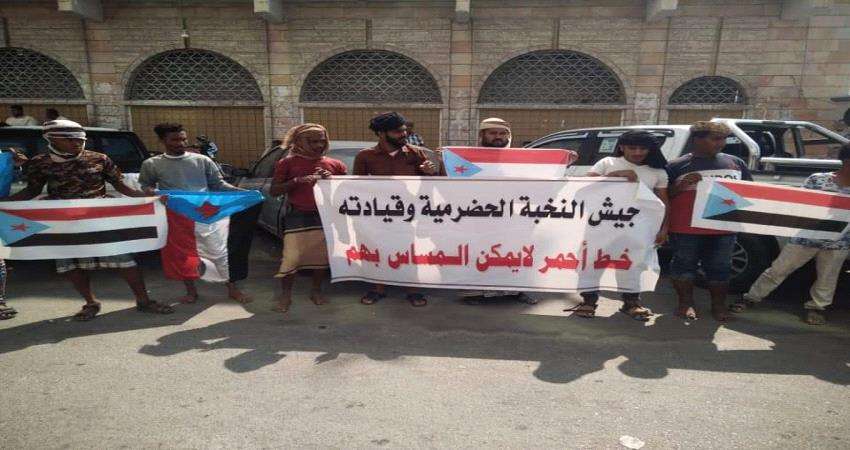 وقفة احتجاجية تطالب بحظر حزب الإصلاح ورحيل قواته من حضرموت