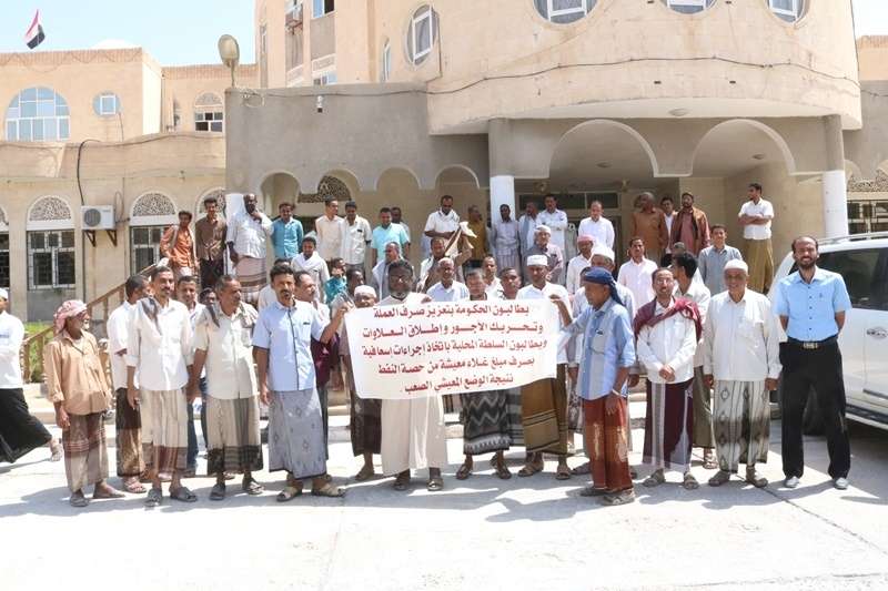 عمال وموظفي المرافق الحكومية بالمجمع الحكومي بوادي حضرموت ينظمون وقفة احتجاجية