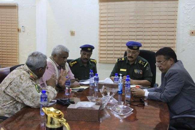 كما تطرق الاجتماع إلي تعزيز قدرات الأجهزة الأمنية والتنسيق المشترك والمتواصل بين المؤسسة الأمنية والمؤسسة العسكرية بهدف توحيد الجهود للحفاظ علي الأمن والاستقرار والسكينة العامة بما من شانه حماية المحافظة من أي اختلالات أمنية.