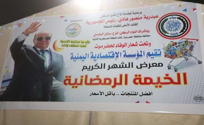 افتتح محافظ حضرموت قائد المنطقة العسكرية الثانية اللواء الركن فرج سالمين البحسني، بالمكلا، معرض الشهر الكريم "الخيمة الرمضانية"، تحت شعار "الوفاء لحضرموت"، التي تقيمها المؤسسة الاقتصادية اليمنية، بالتنسيق مع غرفة تجارة وصناعة حضرموت، برعاية كريمة من فخامة الرئيس عبدربه منصور هادي رئيس الجمهورية.