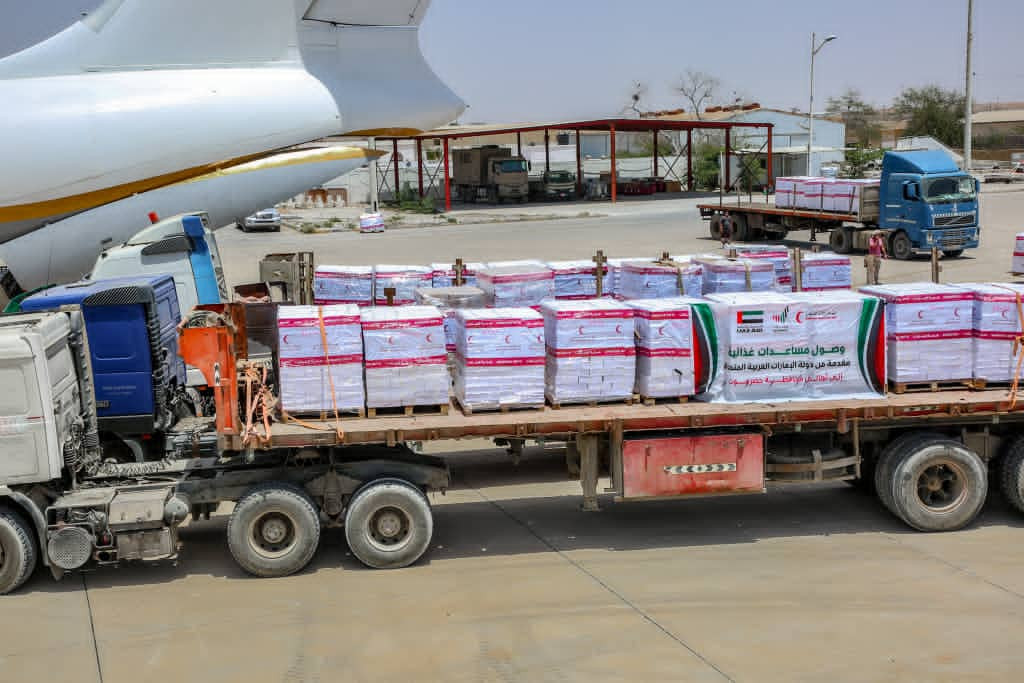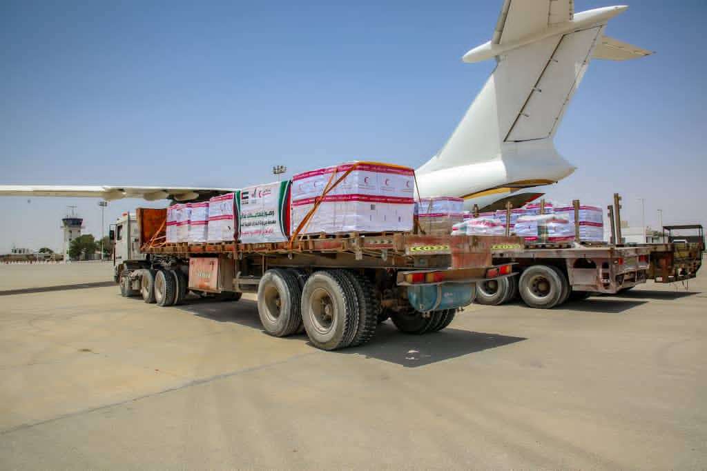 مصوروصول طائرة إغاثية اماراتية إلى المكلا تحمل أطناناً من المساعدات الغذائية كدفعة أولى مقدمة لأهالي حضرموت
