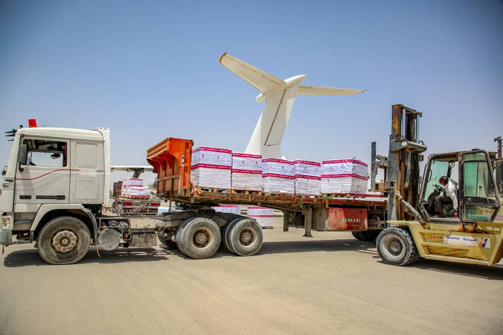 * وصلت إلى مطار الريان الدولي بمدينة المكلا، أمس الخميس طائرة إغاثية إماراتية، تحمل مساعدات غذائية منوعة، مقدمة من دولة الإمارات العربية المتحدة، كدفعة ثانية لدعم الجانب الإنساني بمحافظة حضرموت. وحملت الطائرة على متنها، 29 طناً و 662 كيلو جرام من السلال الغذائية المتنوعة، ليتم توزيعها من قبل الهلال الأحمر الإماراتي، تزامناً مع حلول شهر رمضان المبارك لهذا العام ضمن مشروع توزيع السلال الغذائية التي تنفذها الهيئة في محافظة حضرموت. وتعد هذه الطائرة الثانية بتنسيق وإشراف هيئة الهلال الأحمر، ضمن جسر الإمارات الجوي، للحد من المعاناة الإنسانية والوقوف إلى جانب الأهالي بالمحافظة في ظل الظروف المعيشية والإقتصادية الصعبة التي تعاني منها البلاد، جراء الحرب التي تشنها ميليشيا الحوثي على الشعب اليمني. تجدر الإشارة إلى أن دولة الإمارات قدمت خلال العام الجاري 2021م، 4099 سلة غذائية تزن 175 طن و 437.2 كيلو جرام استفاد منها 20 ألفا و 495 فردا من الأسر المحتاجة والمتضررة في عدد من المناطق المستحقة بمحافظة حضرموت.