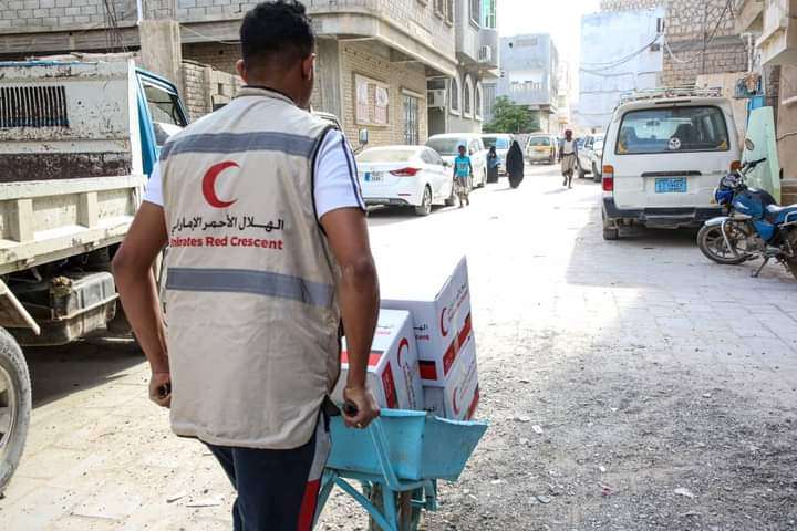 بدعم إماراتي.. هيئة الهلال الأحمر تدشن توزيع المير الرمضاني على اهالي المكلا بمحافظة حضرموت