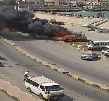لكشف عن سبب انفجار طقم عسكري في حضرموت