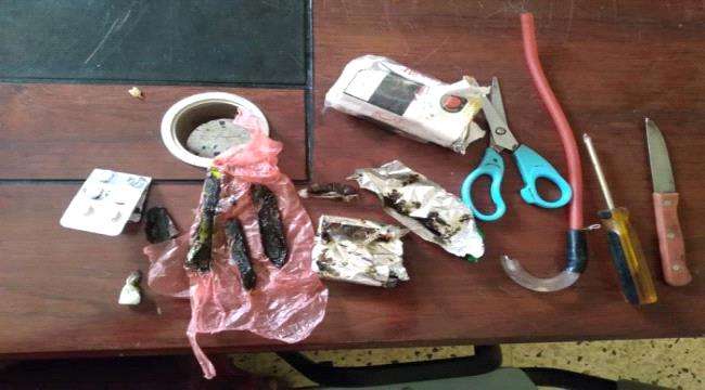 وباغتت المتهم متلبسا بترويجه المخدر، وبحوزته كمية من الشبو والحشيش وأدوات تعاطي واستخدام الشبو وأدوات تقطيع الحشيش سكين ومقص.