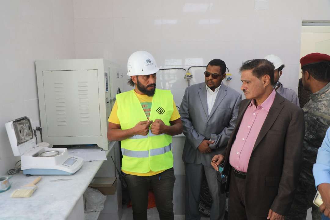 محافظ حضرموت يطلع على التشغيل التجريبي لمعدات مشروع مصنع الجبس التعديني بالمكلا
