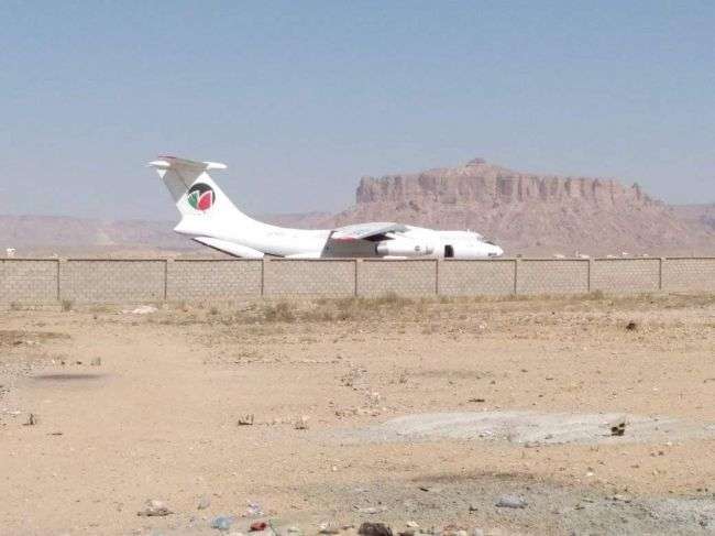 وهذه الطائرة الأولى التي تهبط في المطار بعد تأمينه من قوات دفاع شبوة قبل ايام خلال عملية اعصار الجنوب .