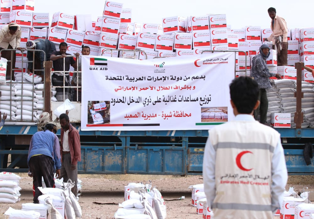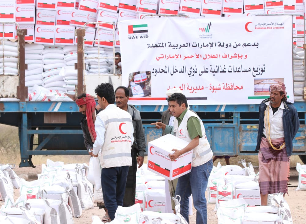 الهلال الأحمر الإماراتي يوزع مساعدات غذائية على ذوي الدخل المحدود بمحافظة شبوة* شبوة -