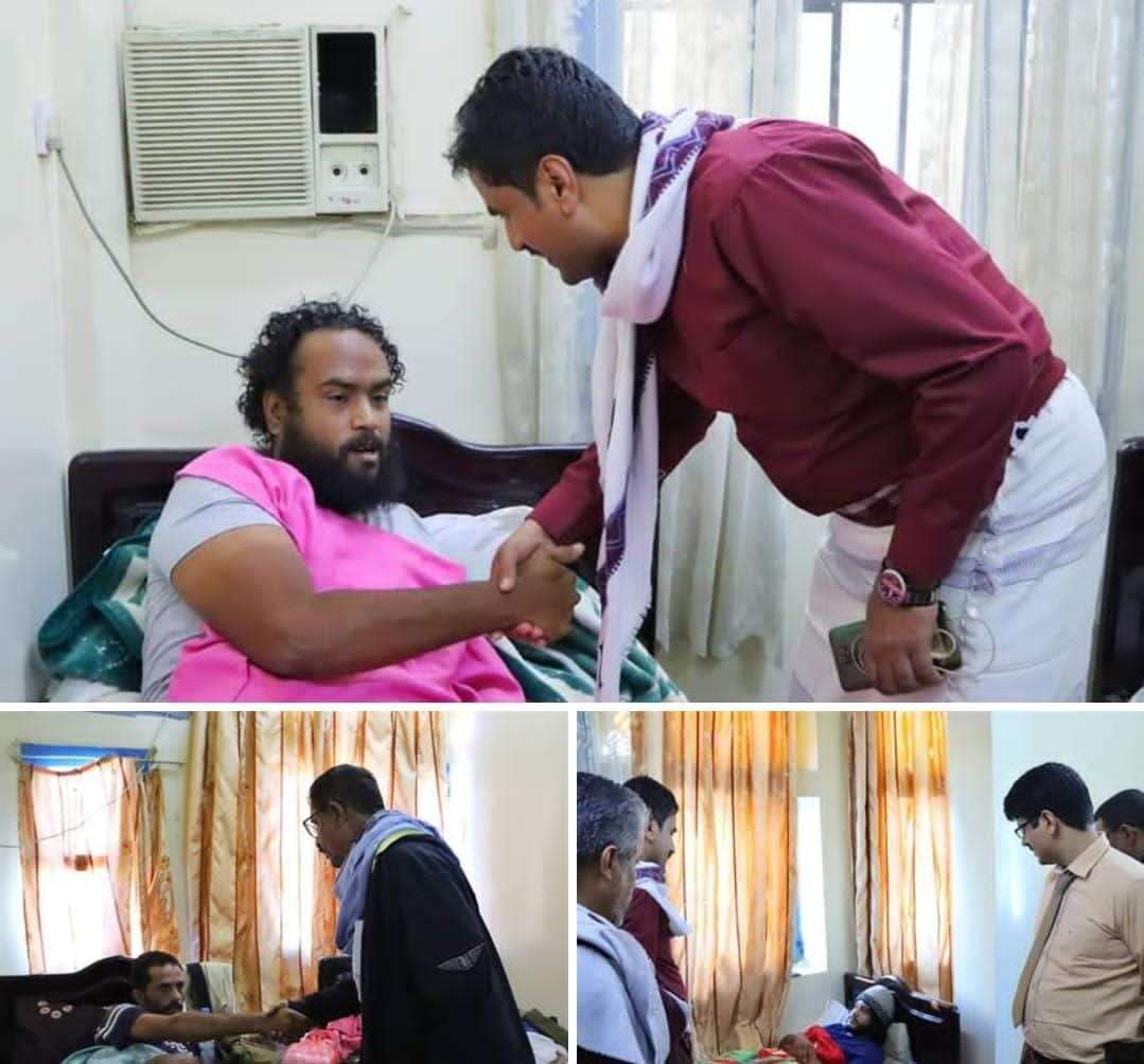 رئيس انتقالي شبوة يطلع على أحوال جرحى الوية العمالقة الجنوبية ويثمن أدوارهم البطولية.