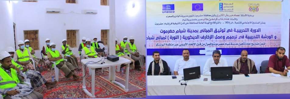 حضرموت..إنطلاق الورشة التدريبية لترميم الزخارف الطينية بمدينة شبام التاريخية.