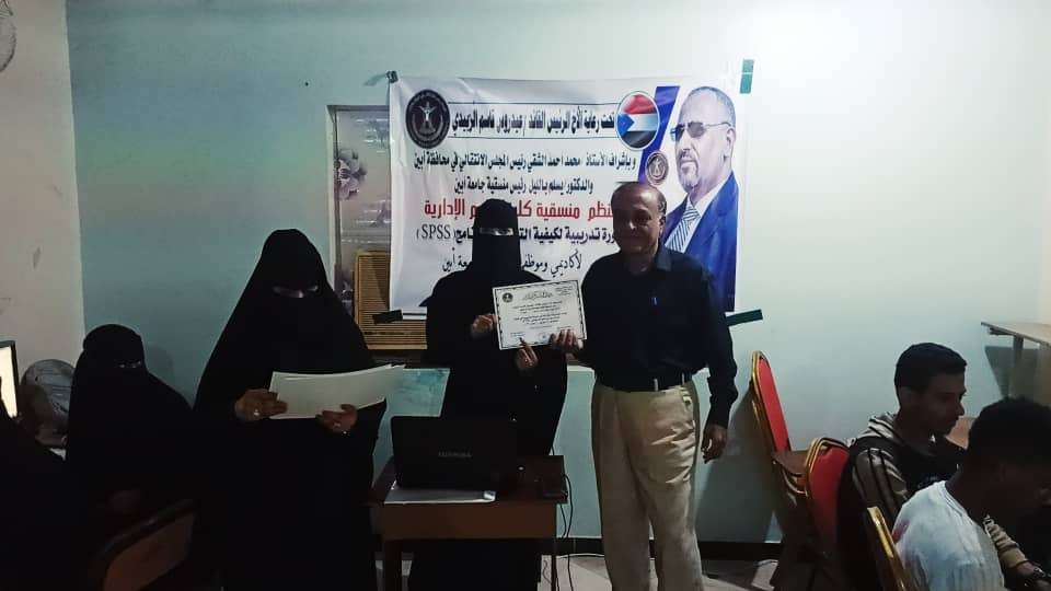 اختتام الدورة التدريبية في البرنامج الاحصائي SPSS لاكاديميي وموظفي وطلاب جامعة أبين.