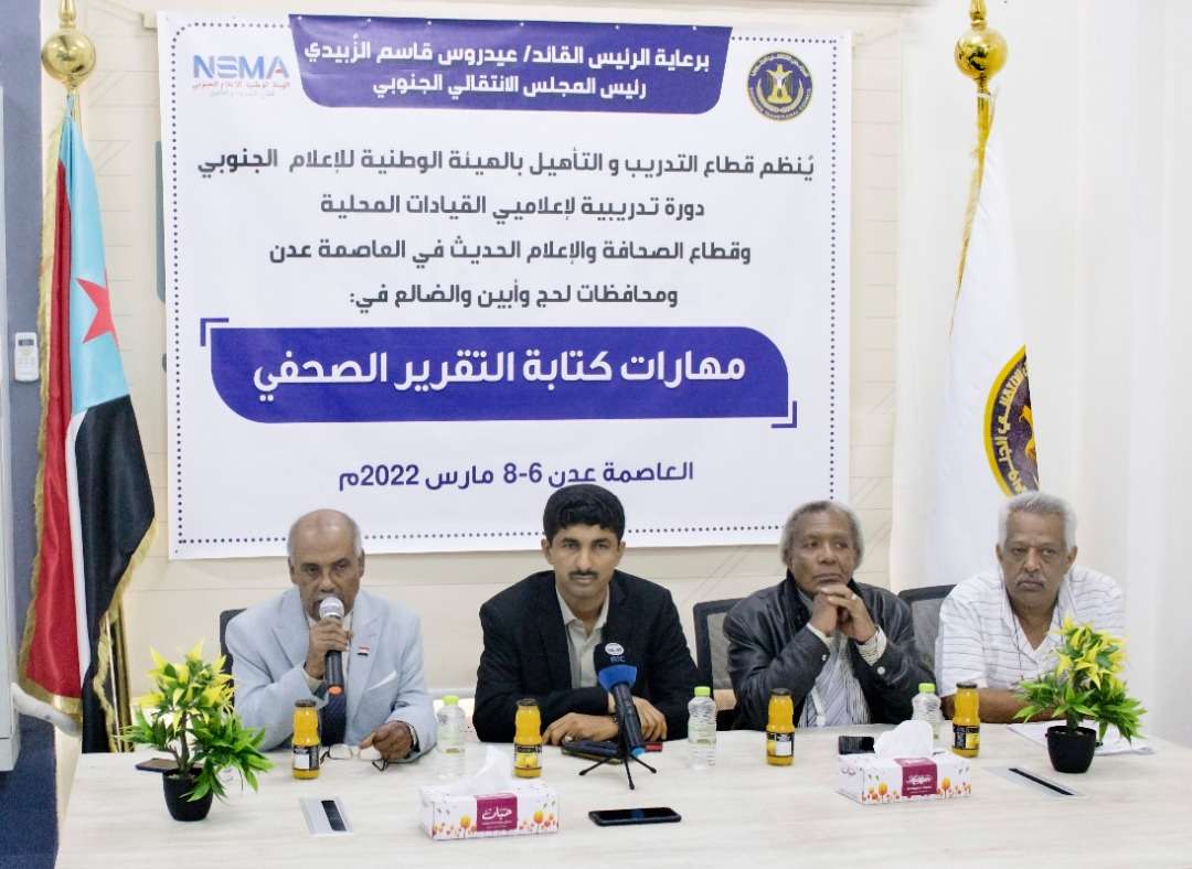 قطاع التدريب والتأهيل يدشن دورة تدريبية في "مهارات كتابة التقرير الصحفي" لإعلاميين من العاصمة عدن ولحج وأبين والضالع.