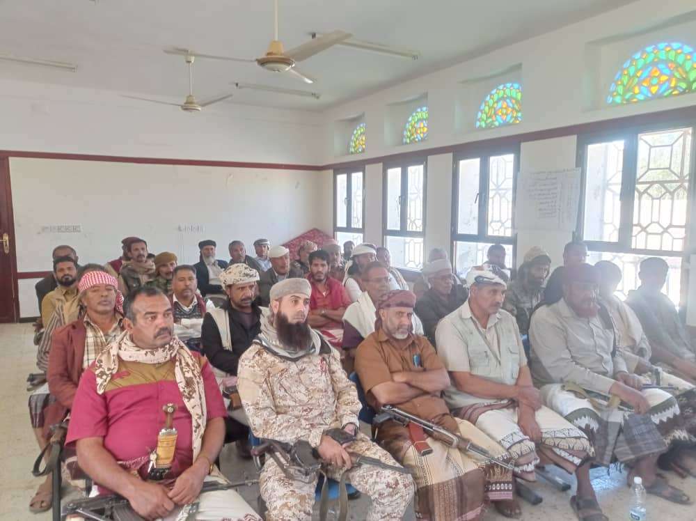 انتقالي الحد يعقد لقاءً موسعاً للجان الأمنية في مراكز المديرية لإدارة أمن الحد وقيادة الحزام الامني يافع.