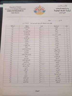 وسيتم تموين المحطات الحكومية والخاصة، وتوفير المحروقات مساء اليوم لجميع المحطات الموجودة في الكشوفات التي تم إصدارها من إدارة المبيعات في شركة النفط بعدن.