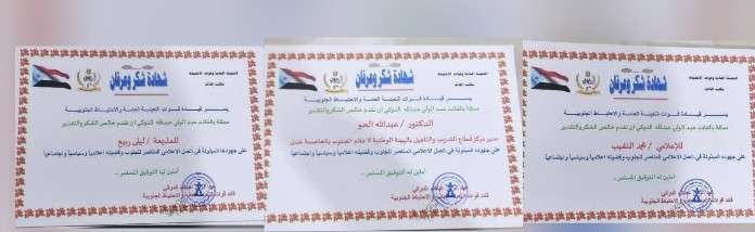كرّم الأخ عبدالولي الدوكي، قائد قوات التعبئة العامة والاحتياط الجنوبية،عدد الدكاترة والمدربين، والإعلاميين الجنوبيين من مختلف محافظات الجنوب الذين قدموا الدور البارز في خدمة الجنوب وشعبه من خلال وسائل الإعلام المختلفة. وجاءت خطوة التكريم للدكاترة والناشطين والإعلاميين الجنوبيين. عرفاناً لنشاطهم الإعلامي تجاه قضية الجنوب وشعبه. وقال الدوكي: أننا في قوات التعبئة العامة أن عملية تكريم الإعلاميين الجنوبيين بالشهائد التقديرية يأتي نظير جهودهم المبذولة تجاه الجنوب وشعبه. مشيراً بأن الجنوب يراهن على الكادر الإعلامي الذي كرّس جهوده من أجل نصرة الجنوب وشعبه حتى تحقيق الهدف المنشود واستعادة الدولة الجنوبية كاملة السيادة. مؤكداً بأن الكادر الإعلامي هو الركيزة الأساسية الذي من خلاله توصيل رسالة الشعوب للرأي العام في الداخل والخارج. ومن أبرز الذين تم تكريمهم الدكتور عبدالله الحو رئيس مركز قطاع التدريب والتأهيل بالهيئة الوطنية للإعلام الجنوبي، والناطق الرسمي لمحور أبين القتالي محمد النقيب. والإعلامية البارزة ليلى ربيع.