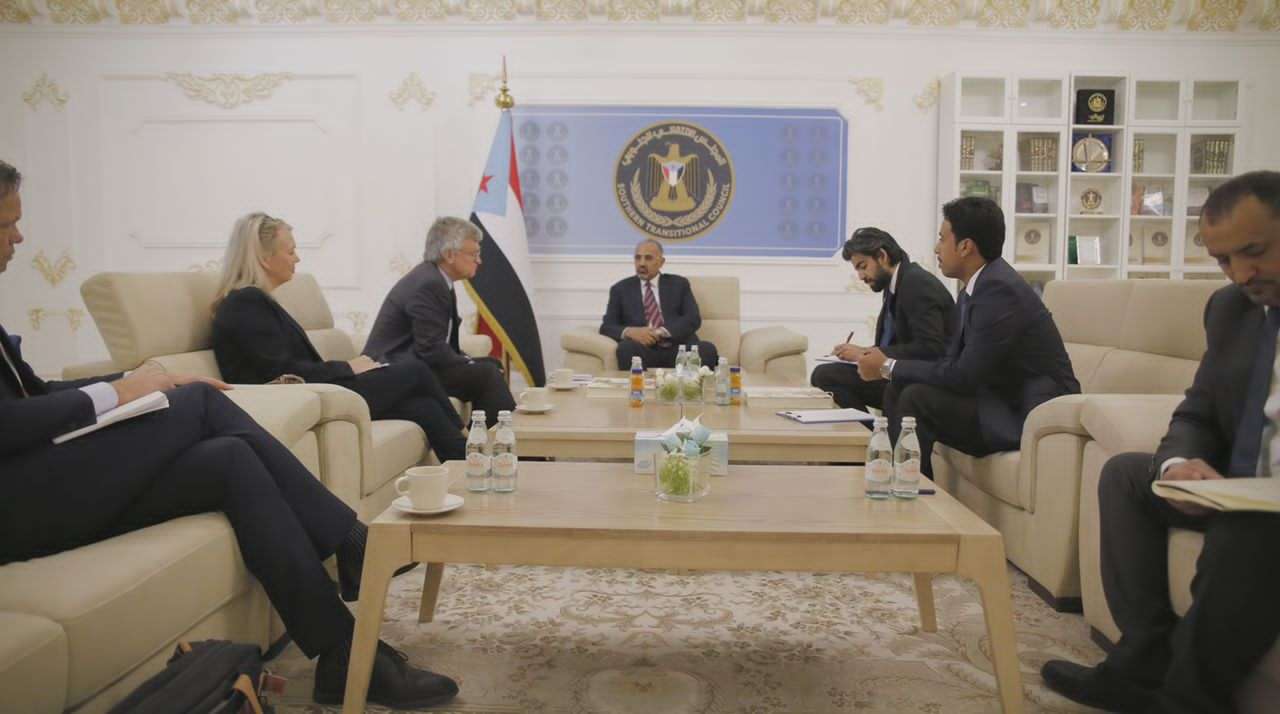 الرئيس القائد عيدروس الزُبيدي يبحث مستجدات الأوضاع الاقتصادية والسياسية والعسكرية مع المبعوث السويدي.