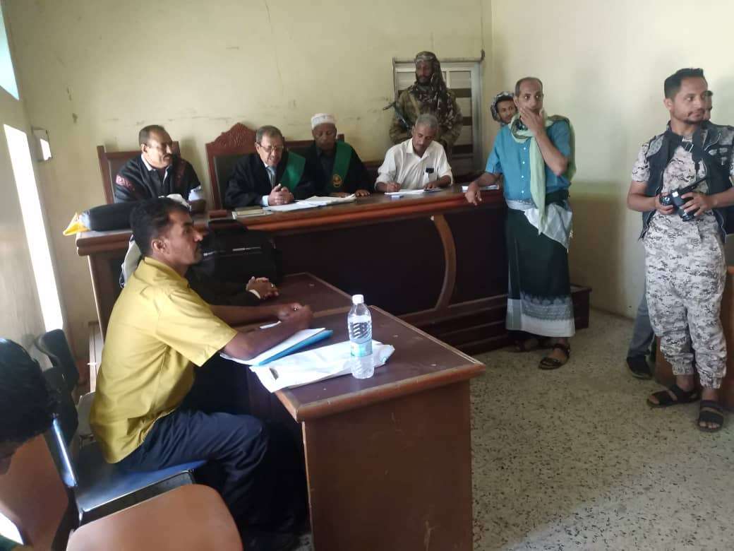 عقدت محكمة إستئناف محافظة الضالع جلستها العلنية صباح هذا اليوم الاثنين برئاسة القاضي/ محسن يحيى طالب رئيس المحكمة رئيس الشعبة الجزائية وبعضوية كلا من القاضي/علي مثنى الحصيني و القاضي/ محمود محمد الماطري عضوا الشعبة وبحضور المحامي العام القاضي جلال المرفدي رئيس نيابة إستئناف المحافظة والمحامي العام احمد علي ناصر عضو نيابة الإستئناف و بحضور القاضي/ احمد غالب النمر امين سر الجلسة وفي الجلسة تبين حضور المتهم حاشد مثنى الحشطة مع محاميه الاستاذ/ محمد احمد حمود الحود وحيث كانت الجلسة محددة للنطق بالحكم فقد تم في الجلسة تلاوة اسباب وحيثيات الحكم ثم تم النطق بالحكم الذي قضى بتأييد الفقرات الاولى والثالثة والرابعة من منطوق الحكم الابتدائي الصادر عن محكمة الحصين الإبتدائية وتعديل الفقرة الثانية لتقرأ على النحو الأتي: معاقبة المدان حاشد مثنى الحشطة بالإعدام تعزير رميا بالرصاص حتى الموت وعقب النطق بالحكم وافقت النيابة العامة عليه فيما طلب المتهم قيد الطعن بالنقض امام المحكمة العليا للجمهورية و رفعت الجلسة