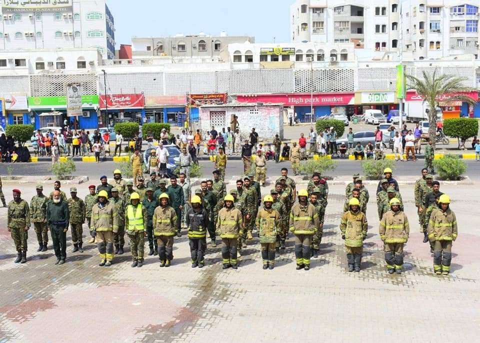 إدارة أمن عدن تحتفي باليوم العالمي للدفاع المدني بفعالية استعراضية وخطابية.