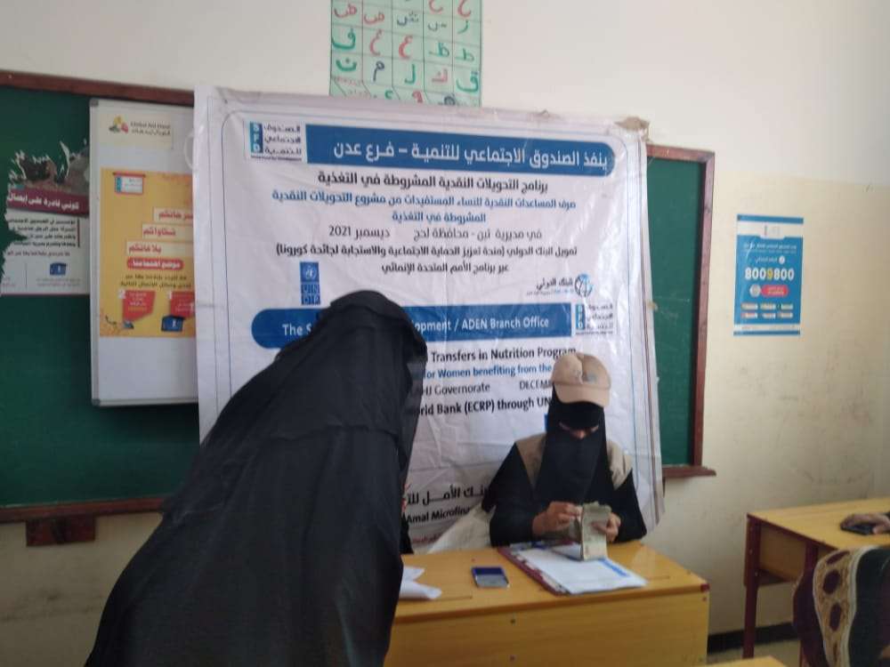 دشن الصندوق الاجتماعي للتنمية فرع عدن في محافظة لحج مديرية تبن صرف المساعدات النقدية للنساء المستفيدات من مشروع التحويلات النقدية المشروطة بالتغذية المرحلة الثانية وذلك بتمويل من البنك الدولي " منحة تعزيز الحماية الاجتماعية والاستجابة لجائحة كورونا عبر برنامج الأمم المتحدة الانمائي . فيما تم توزيع مراكز الصرف للمستفيدات في جميع المناطق لتسهيل وتيسير وصول المساعدات دون عناء ، وبلغ عدد المستفيدات في مركز العند 3580 مستفيده . الجذير بالذكر أن هذا المشروع يعتبر من أضخم المشاريع المقدمة لمديرية تبن حيث يعتبر نقلة نوعية لجميع الأسر المستهدفة في تحسين الوضع المعيشي والحد من انتشار حالات سوء التغذية في المجتمع . حضر التدشين ضابط المشروع الأستاذ صالح الحكم ، وضابط العمليات الأستاذ محمد العنتري ، ومنسق العند الأستاذ محمد محسن ، ومنسق مركز الحسيني الأستاذ عادل عياش . .