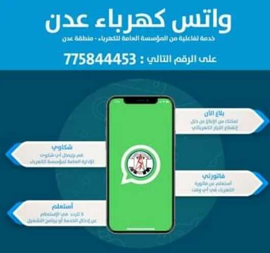 مؤسسة كهرباء العاصمة عدن تطلق خدمة جديدة للتفاعل عبر تطبيق واتساب