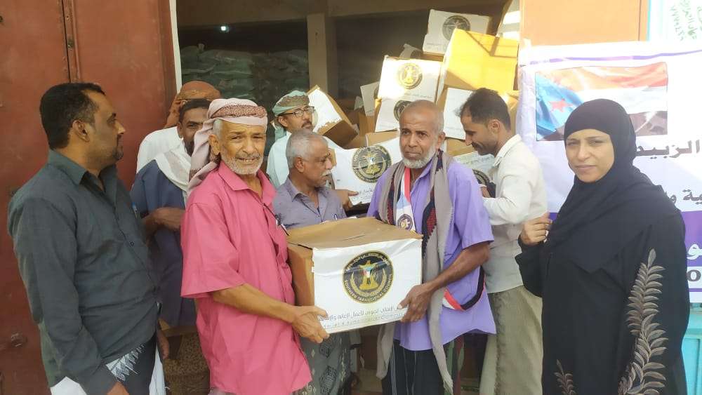 بدعم الرئيس القائد عيدروس الزبيدي انتقالي لحج يدشن توزيع السلال الغذائية لاسر الشهداء بالمحافظة.