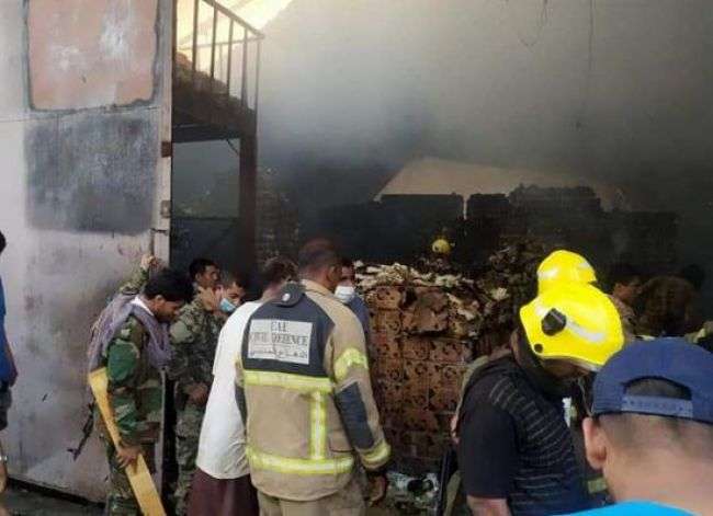 اندلاع حريق في مخازن للمواد الغذائية في الشيخ عثمان