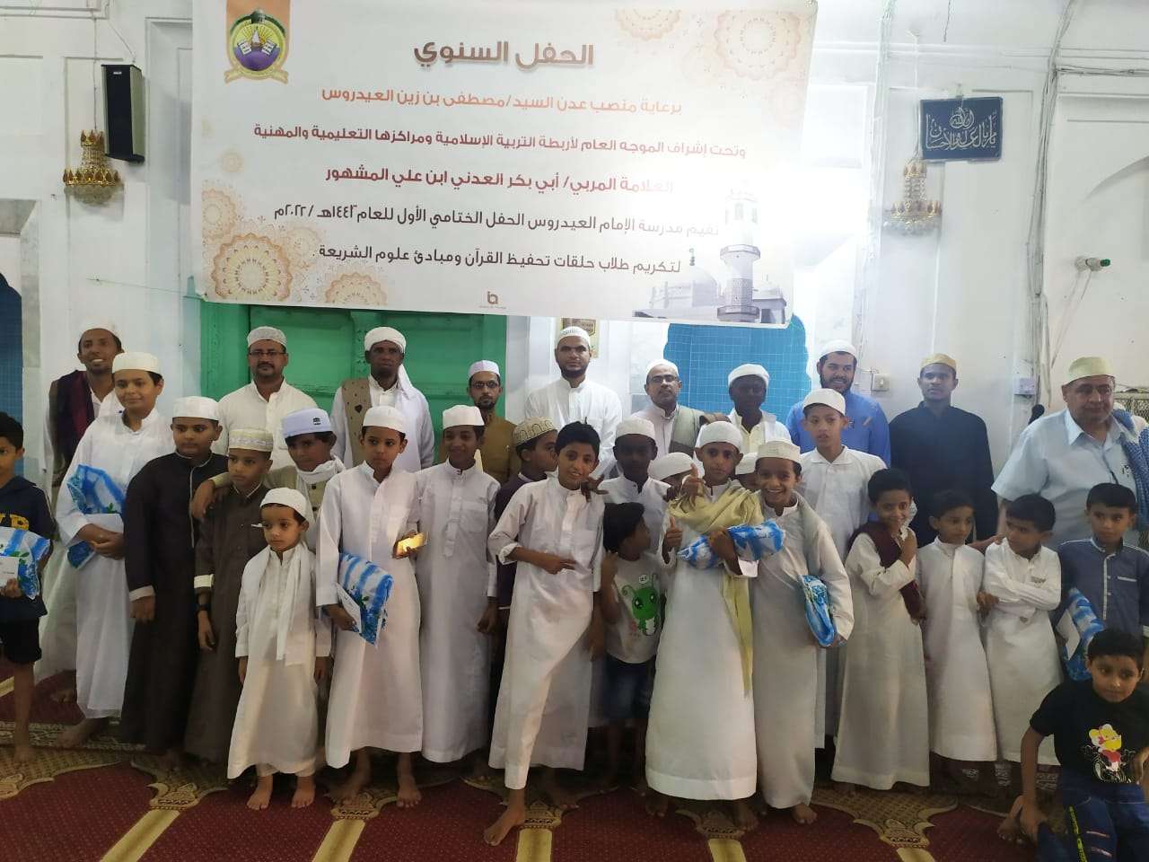 مسجد إلامام العيدروس بكريتر يكرّم طلاب حلقات القرآن الكريم ومبادئ علوم الشريعة.