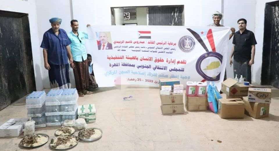 إدارة حقوق الإنسان بانتقالي المهرة تزور السجن المركزي بالغيضة وتقيم مأدبة إفطار وتوزع أدوات النظافة لنزلاء السجن.