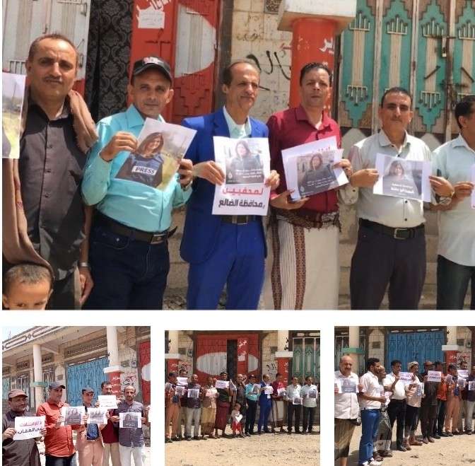 وقفة احتجاجية بمحافظة الضالع للتنديد باغتيال الصحفية شيرين ابوعاقلة من قبل قناصة الاحتلال الإسرائيلي.