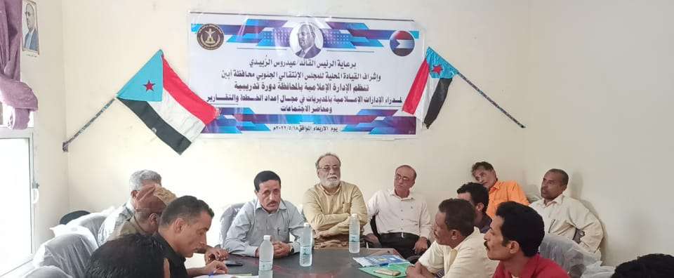 إعلامية انتقالي أبين تنظم دورة تدريبية لمدراء الادارات الإعلامية في المديريات في مجال إعداد الخطط والتقارير.