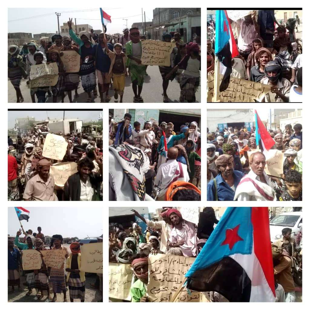 عقب دخول مليشيات الإخوان الإرهابية مديرية أحور قبل أيام، خرج أبناء أحور صباح اليوم، بمسيرة جماهيرية حاشدة طاليت بخروج مليشيات الإخوان الإرهابية بقيادة المدعو لؤي الزامكي من المديرية التي انتشرت في مدينة أحور بشكل مخيف ومستفز أغضب المجتمع الاحوري. حيث انطلقت التظاهرة الجماهيرية من أمام سوق النحل وجابت الشارع العام ذهاباً واياباً حاملين الشعارات والهتافات المطالبة بخروج مليشيات الإخوان من المديرية. وفي التظاهرة الجماهيرية عبر أبناء أحور عن تأييدهم لبيان اللواء 111 الذي طالب بخروج القوات من مديرية احور في غضون أسبوع. وناشد المتظاهرين بتعزيز قوات اللواء 111 مشاة حتى يقوم بمهامه المناط به في تأمين المديرية من اتجاه الشرق والغرب.