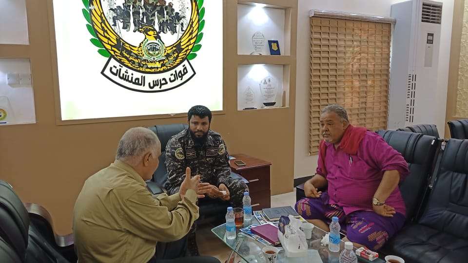 التقى العميد أحمد مهدي بن عفيف قائد قوات حرس المنشآت الحكومية قيادة اللجان المجتمعية في العاصمة عدن ممثلة بالعميد علي أحمد النمري رئيس اللجان ونائبه العميد عبدالرحمن الشعوي. وفي مستهل اللقاء رحب العميد أحمد بن عفيف بقيادة اللجان المجتمعية في العاصمة عدن مشيدا بالجهود التي يبذلها النمري والشعوي لمساعدة السلطة المحلية. وشدد قائد قوات حرس المنشآت على الدور الهام للجان المجتمعية في ظل الأوضاع الراهنة التي تمر بها العاصمة عدن خاصة والبلاد بشكل عام. وأكد العميد أحمد بن عفيف استعداد قوات حرس المنشآت الحكومية لتقديم كافة أوجه المساعدة للجان المجتمعية داعيا الجميع إلى الوقوف صفا واحدا خلف السلطة المحلية ممثلة الأستاذ أحمد حامد لملس وزير الدولة محافظ العاصمة عدن. ووجه بن عفيف كلمة شكر لقيادة التحالف العربي ممثلة بالمملكة العربية السعودية ودولة الإمارات على ما تقدمانه من دعم لبلادنا في مختلف الأوجه. من جانبهما أشاد النمري والشعوي بقوات حرس المنشآت الحكومية وما تقدمه من أدوار هامة لحفظ الأمن والاستقرار في المرافق والمؤسسات الحكومية. وفي ختام الزيارة قام النمري والشعوي بزيارة المركز الطبي لقوات حرس المنشآت ونادي حرس المنشآت الرياضي واطلعا على البنية التحتية والخدمات المقدمة فيهما.
