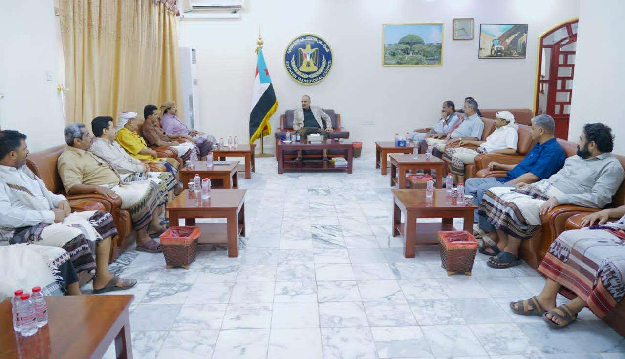 الرئيس الزُبيدي يستقبل وفدا من أبناء محافظة البيضاء برئاسة المحافظ السوادي.