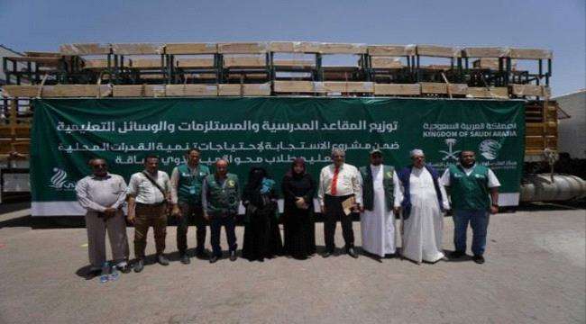 سلمان للإغاثة يوزع مقاعد مدرسية في عدن وحضرموت