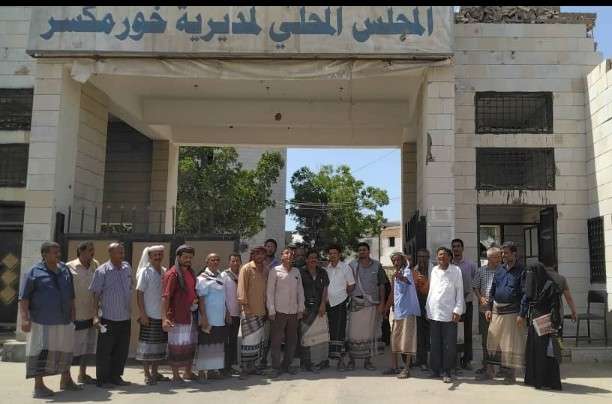نظمت اللجان المجتمعية بمديرية خور مكسر بالعاصمة عدن، اليوم وقفة احتجاجية بمقر المجلس المحلي بالمديرية، عقب التعسف والمنع وإفشال عمل اللجان من قبل مأمور خور مكسر عواس الزهري. وقال المحتجون أن أسباب الوقفة نتيجة لقيام مدير المديرية بمنع سكرتير اللجان الأستاذ خالد الجرادي من دخول المجلس المحلي لمزاولة عمله بمكتب اللجان. وفي الوقفة طالب المحتجون محافظ العاصمة عدن الأستاذ أحمد حامد لملس بأنصاف أعضاء اللجان المجتمعية نتيجة مايتعرضون له من ممارسات تعسفية لهدف إفشال دور عمل اللجان المجتمعية في عموم المديرية.