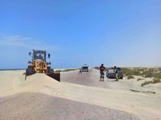 إزاحة الكثبان الرملية من الخط الرابط بين شبوة وحضرموت