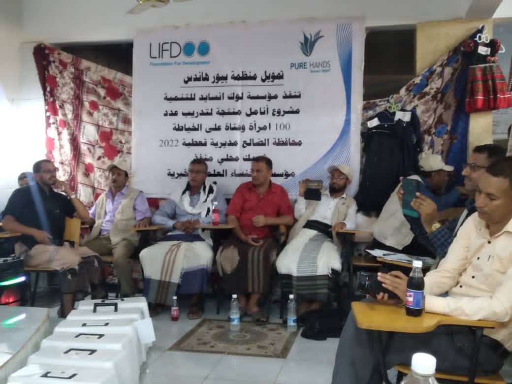 بحضور الشيخ محمدالزيدي مديرعام قعطبة نضمت مؤسسة لوك انسايد للتنمية بالتعاون مع مؤسسة الخنساءالعلمية الخيرية صباح اليوم الخميس الحفل الختامي لمشروع انامل منتجة بتخرج 100متدربة في مجال الخياطةوالتطريز في قعطبة والممول من منظمة بيور هاندس وفي الحفل الذي بدا بايات من الذكر الحكيم القت مديرة المؤسسة اروى العولقي كلمة رحبت فيها بمديرعام قعطبة والحاضرين قائلةنحتفل اليوم بتخرج مائة مستفيدة من الارامل والايتام والنازحات في مهنة الخياطة والتطريز حيث تم تسليمهن مكائن خياطة ليعلن من خلالها اسرهن وندعو المنظمة ورجال الخير لدعم المؤسسة من اجل دعم بقية الاسرالمحتاجة وتحدثت العولقي عن انجازات المؤسسة خلال الفترة الماضية وهذا المشروع على مدى اربعة اشهر من العمل في مشروع انامل منتجة في إفادة مائة متدربة بهذه الحرفه اليدوية عبر مؤسسة الخنساء وكذلك فعل الخير ومساعدة المحتاجين والارامل والايتام على العموم والنازحات على وجه الخصوص فالمؤسسة نفذت الكثير من المشاريع الخيرية خلال الفترة الماضية منها رعاية الايتام وتوزيع السلات الغذائية وغيرها وفي الجانب التعليمي تخرج الحافظات لكتاب الله والمسابقات السنوية مضيفة بان لدى المؤسسة اهداف وطموحات كثيرة ونامل من منظمة الايادي النقية ولوك ان سايد وفاعلي الخير مواصلة الدعم والدفع بمثل هذه المشاريع ومشاريع اخرى كون الاحتياجات كثير والاقبال اكثر نشكر الجهه المانحه والمموله والمساعدة لهذا المشروع ممثلة بمؤسسة لوك آن سايد ومنظمة بيور هاند والشكر للمدير العام مدير عام قعطبة الشيخ محمدالزيدي القى كلمةاكدفيها بانه سعيد جدا بحضور حفل تخرج مائة 100 متدربه في مجال الخياطة وتسليمهن عدد100 مكينة خياطه ونتمنى من المتدربات ان يكونين عند مستوى المسؤوليه وقصص نجاح ملهمه للاخرين وقدم المدير العام الشكر لمؤسسة الخنساء على جهودها لتبنيها مثل هذه المشاريع المستدامه والناجحه كما نشكر منظمة الايادي النقية على دعمها وتمويلها لهذا المشروع الناجح نحن بحاجه الي دعم مشاريع التمكين الاقتصادي للاسر الفقيره والضعيفه حتى تستطيع ان تعول اسرها مؤكدا بان السلطه المحليه تدعو جميع المنظمات الى دعم المشاريع الصغيره والمستدامه للاسر النازحه والفقيره في المديريه حتى تتمكن هذه الاسر من الحصول على مصادر دخل لتعول اسرها ودعا المدير العام منظمة الايادي النقيه الى المزيد من الدعم لهذه المشاريع ومشاريع اخرى في مجال الغذاء والمياه والاصحاح البيئي والصحه والتعليم وغيرها ونحن في السلطه المحليه سنقدم لهم كل التسهيلات والمعلومات والاحتياجات لتنفيذ مثل هذه المشاريع منسق مؤسسة لوك انسايد بمحافظة الضالع الاستاذ فكري القطوي قدم الشكر لمنظمة بيور هاندس على تمويل مشروع انامل منتجة لعدد 100متدربة في قعطبة من الاسر النازحة والشكر للاخ قيس الحاج في مؤسسة لوك انسايد لتنفيذ مشروع انامل منتجة بالشراكة مع مؤسسة الخنساء والشكر لضابط المشروع معاذ الاصهب والقائمات على المؤسسة على جهودهم من اجل نجاح المشروع وستكون هناك حزمة من البرامج ينبغي ان نكملها في اطار هذا البرنامج الذي بدا محوره الاول ويجب على جميع المتدربات تطبيق كل ماتعلمنه خلال الدورة التدريبية عمليا ليعود بالمنفعه وكسب الرزق الحلال متمنيا للجميع التوفيق والنجاح وفي الاحتفالية قدمت زهرات المؤسسة عدد من الفقرات الانشادية المعبرة التي نالت استحسان الجميع وفي الاحتفالية تبرع مديرعام قعطبة بمبلغ 200الف ريال و مدير المياة عبدالغني ابوهدال 200الف ريال والوحدة التنفيذية احمد الضحياني وصبري النجار 100الف ريال وعبدالعزيز الليث 50الف ريال وفي ختام الاحتفالية تم تكريم المتدربات بمكائن خياطة وشهادات تقديرية كماتم تكريم المدير العام و الوحدة التنفيذية والجهات الداعمة والمشاركة والمساهمة وفاعلي الخير بشهادات تقديرية حضر الاحتفالية مدير المياة عبدالغني ابوهدال ومدير الزراعة فؤاد ابوهدال ومسؤولي الوحدة التنفيذية اح