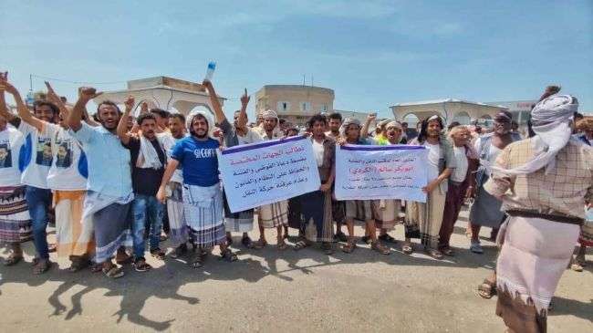 وقفة احتجاجية حاشدة لسائقي نقابة النقل الثقيل امام بوابة ميناء عدن