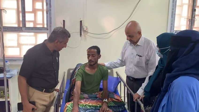 القائم بمهام رئيس انتقالي العاصمة عدن يتفقد جرحى تفجير خور مكسر الإرهابي في مستشفى الجمهورية.