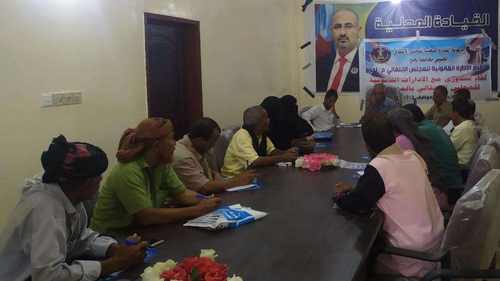 قانونية انتقالي لحج تشدد على ضرورة متابعة سير عمل الأجهزة التنفيذية على مستوى المحافظة.
