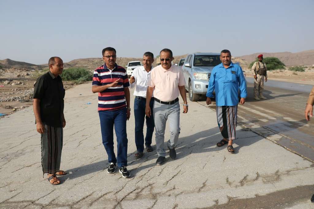 أمين عام محلي حضرموت يتفقد الأضرار التي لحقت بمنطقة العيون بمديرية غيل باوزير ويوجه بمعالجتها