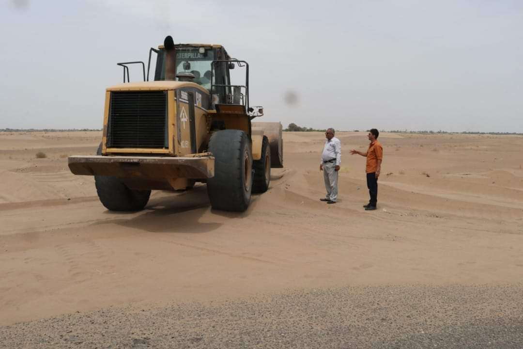 استمرار إزاحة الرمال من خط الحسيني بمحافظة لحج.