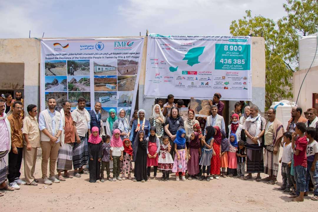 وفد خارجي رفيع المستوى يزور مديرية الملاح بلحج للاطلاع على تدخلات مشروع دعم صمود الفئات الضعيفة في اليمن.