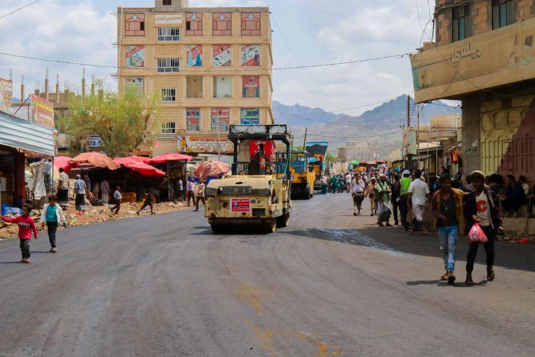 بتمويل صندوق صيانة الطرق.. الجهة المنفذة تستمر في أعمال سفلتة الشارع الرئيسي لمدينة قعطبة.